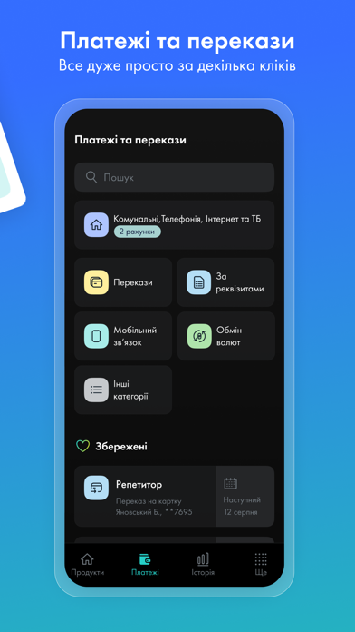 - Перекази грошей ще зручніші: за номером телефону, за номером картки, а при переказі на карту іншого банку відображається логотип банку-отримувача для того, щоб впевнитись в коректності вказаного номеру карти.